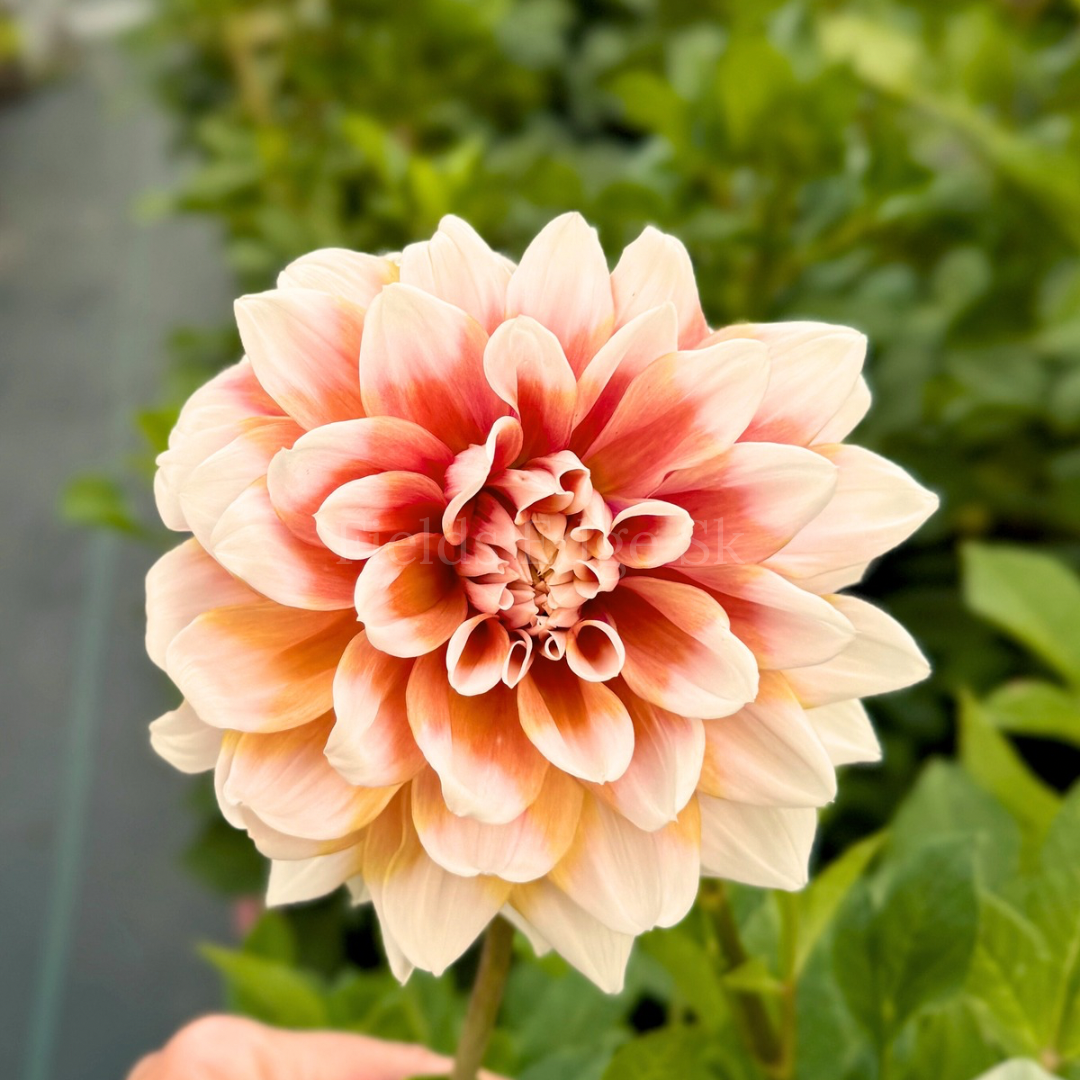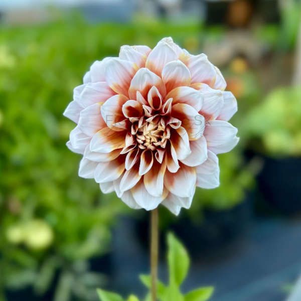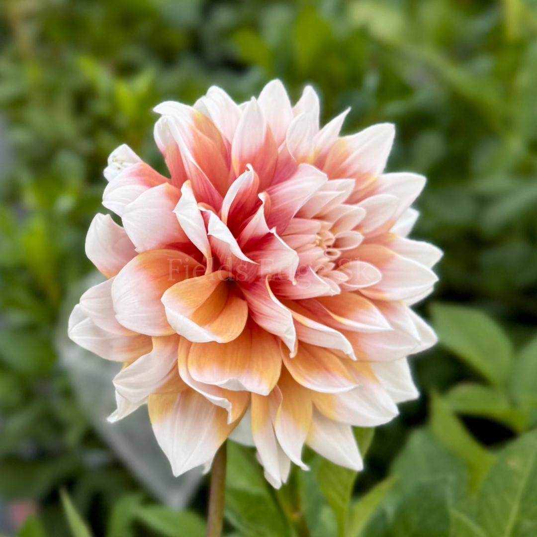 Field notes: Fields Edge #1 favorite in 2025. I saw photos online with pink/red streaking and pointed petals and fell in love, once blooming, I realized that I had no red variegation at all. BUT it’s even more beautiful than anticipated! I’m unsure if this is a result of my growing conditions, the unpredictability of variegated dahlias, a mislabel or if I have a sport. Either way, I was thrilled to find each and every bloom opening in a pure white with toffee, terracotta and salmon centres. Truly unique coloring!